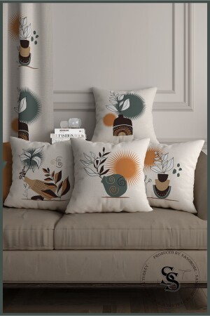 MNZ-Bohemian Design Flat Art Boho Style مجموعة من 4 أغطية مسادة من طراز الرموز الرقمية المطبوعة في ألوان البني والكريم