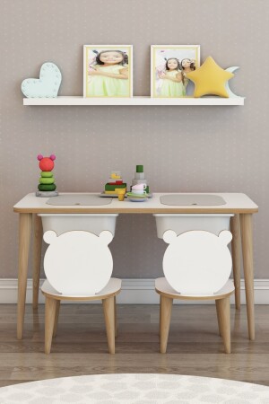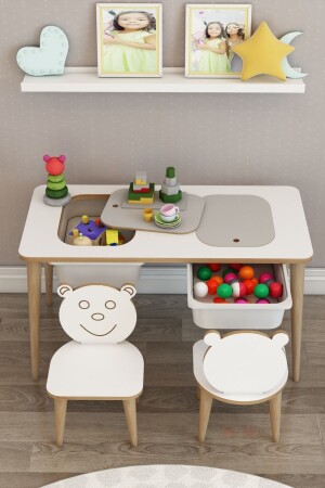 ألعاب الأطفال من طاولة ومقعد من الخشب من طراز مونتيسوري