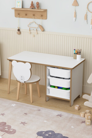MNZ-مجلس نشاطات اللعب للأطفال 90x45 سم 3 صحون مائدة دراسة الأطفال مع الظهر - باندا OBIKIDS001