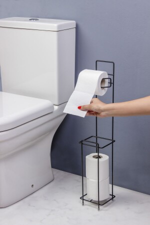 Wc Banyo Tuvalet Ayaklı Kağıtlık Yedekli Tuvalet Kağıtlığı Mat Siyah WC siyah kağıtlık