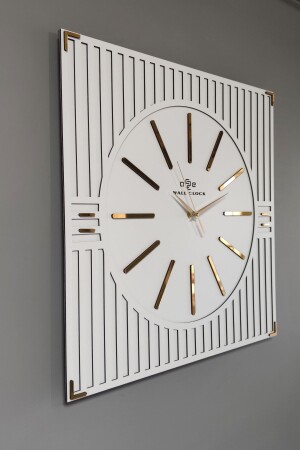 MNZ-مخصصة فخمة الشريط نمط المرآة plexiglass ديكوراتي الأبيض والذهب مربع ساعة الجدار 50x50cm
