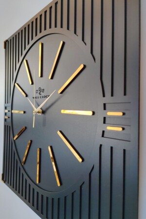 MNZ-مخصصة فخمة الشريط نمط المرآة plexiglass ديكوراتي الأسود والذهب مربع ساعة الجدار 50x50cm