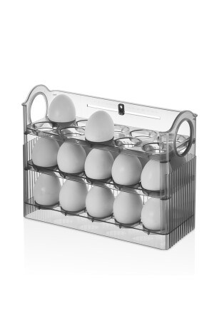 MNZ-مخصص 3 مستوى رف صندوق تخزين البيض الثلاجة المرتبط بالباب الجانبي- Anthracite MPL-2023