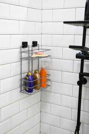 Yapışkanlı 3 katlı Banyo Rafı Duş Şampuanlık Duvar Düzenleyici Organizer zbt0010