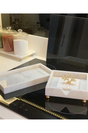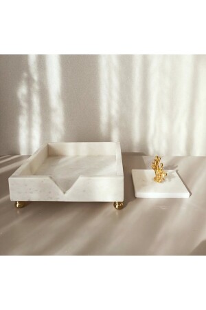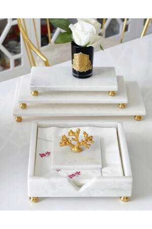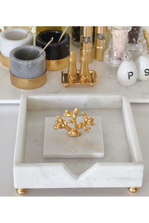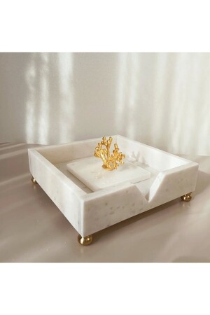 MNZ-مربر أبيض مربع حامل النقرات مع تفاصيل المرجان الذهبية