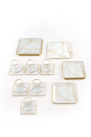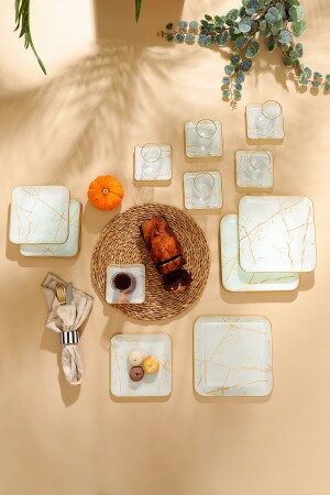 MNZ-مربر أبيض مربع 24 قطعة شاي مجموعة من الرخام الأبيض 24 قطعة شاي مجموعة