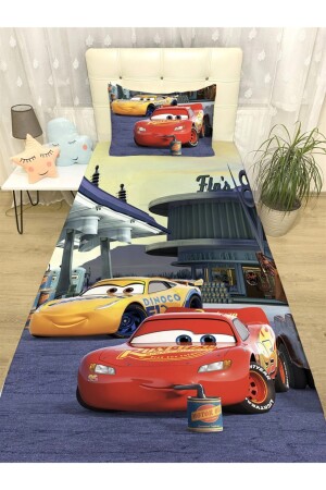 MNZ-مربط السيارات الأحمر والأصفر غطاء السرير والوسادة evortu1004