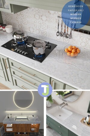 MNZ-Green White Kitchen Countertop Foil Coated Tiles Stone Pattern 60 سم × 100 سم