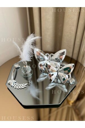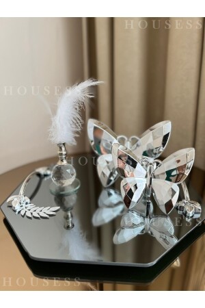 Lüx Kare Kelebek Aksesuarlı Paslanmaz Çelik 6’lı Gümüş Kahve, Çay, Dekoratif Sunum Servis Tepsisi MZKBK667