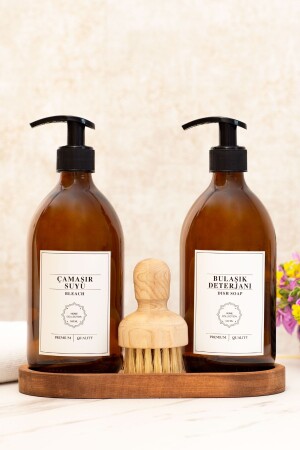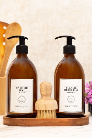 2'li Amber Cam Sıvı Sabunluk Mutfak Bulaşık Deterjan Şişesi 500ml AMENSABUN