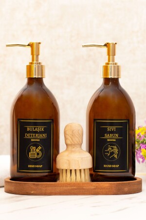 MNZ-2- Piece Amber Glass Liquid Soap Dispenser مطبخ غسل الأطباق زجاجة مضغوطة 500 مل آمنسابن