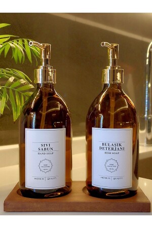 MNZ-2- Piece Amber Glass Liquid Soap Dispenser مطبخ غسل الأطباق زجاجة مضغوطة 500 مل آمنسابن