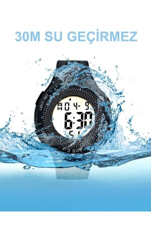MNZ-مصادرة للماء 30mt ساعة المقبض الرقمية السيليكون الشاب لامع أسود Valhal30mt