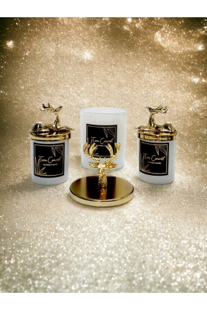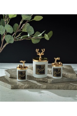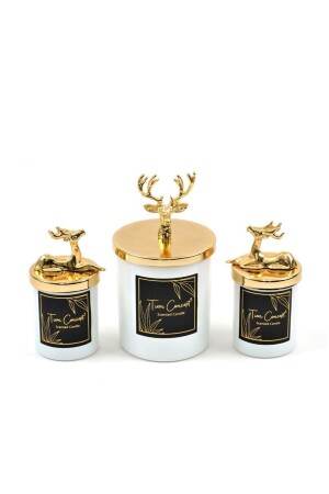 MNZ-مصممة خاصة الديكورية الذهبية العشبة الفانيلا رائحة الكأس البيضاء مجموعة شمعة من 3
