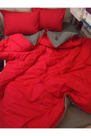 MNZ-مضاعفة الجانب الأحمر الرمادي مزدوج اللون مزدوج غطاء غطاء مع الأوراق المطوية NevDüz