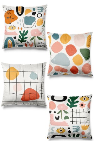 Bohem Flat Art Design Boho Style Kahverengi Krem Renklerde 4'lü Dijital Baskılı Kırlent Kılıfı