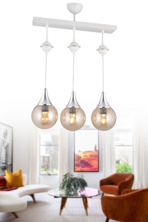 MNZ-معلقة مصباح صف صالون أبيض 3 قطع عسل غلاف الزجاج العلوي الكروم إلى أسفل وجهة فخمة الشنابل snsz50180