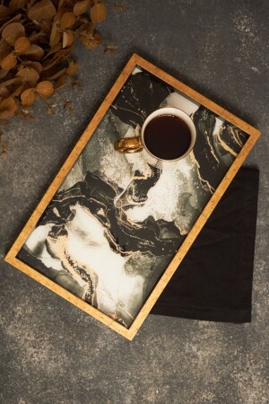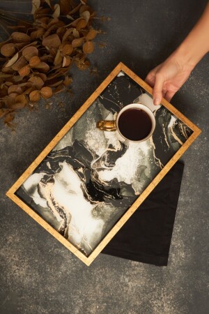 3 Lü (51- 37- 30 CM) Ahşap Kulplu Metal Tepsi Çay Tepsisi Kahve Tepsisi Sunum Tepsi Seti