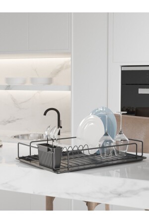 Paslanmaz Alüminyum Iki Katlı Siyah Bulaşıklık Modern Tabaklık