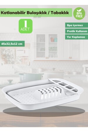 Açılır Kapanır Sürgülü Tabaklık Bulaşıklık Bulaşık Sepeti- Beyaz