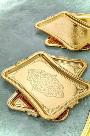 Paslanmaz Çelik Kare 6lı Aksesuarsız Çay Kahve Sunum Tepsisi