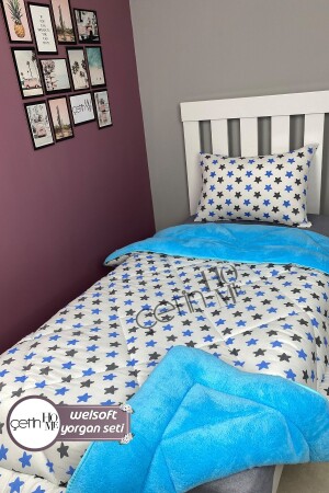 MNZ-مواحدة مزدوجة الطريق Welsoft Duvet مع مساحة ملونة 155x215cm النجم الأزرق