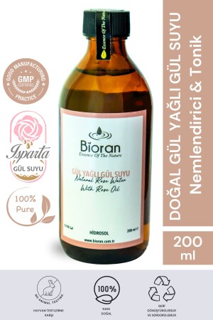منتج: ماء الورود مع زيت الورود 200 مل. تغليف: 200 مل. زجاجة زجاجية مع غطاء وقفص القفل. أصله: تركيا المكونات: (1.