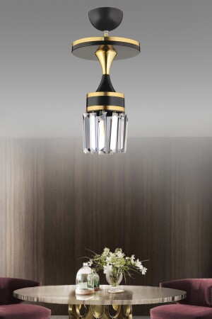مظهر المنتج اسم المنتج: نايروبى سيلنر واحد أسود بلافونير مدرن مع حجر بلورية وشريط صفراء عرض المنتج: 20 سم ارتفاع