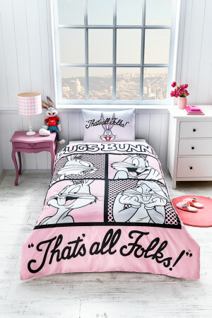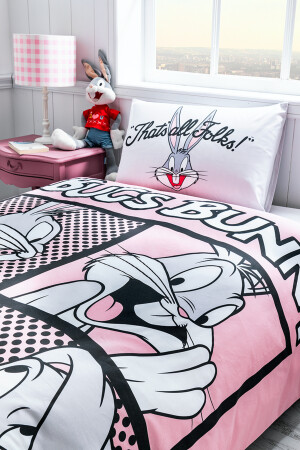 Bugs Bunny Smile Tek Kişilik Kapitone Nevresim Kırmızı