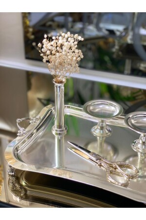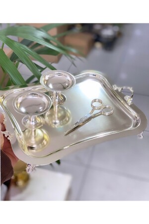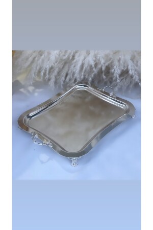 Lüx Kare Kelebek Aksesuarlı Paslanmaz Çelik 6’lı Gümüş Kahve, Çay, Dekoratif Sunum Servis Tepsisi MZKBK667
