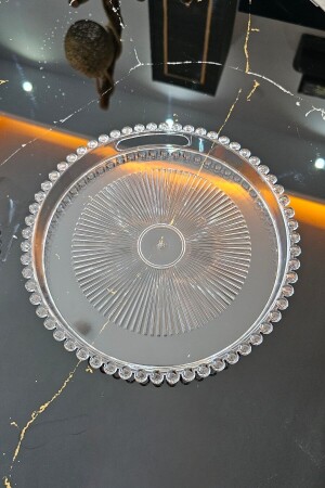 MNZ-Natural Calacatta Marble Round Tray مع معقب ذهبية MRM0128