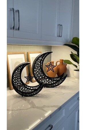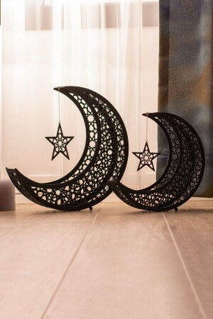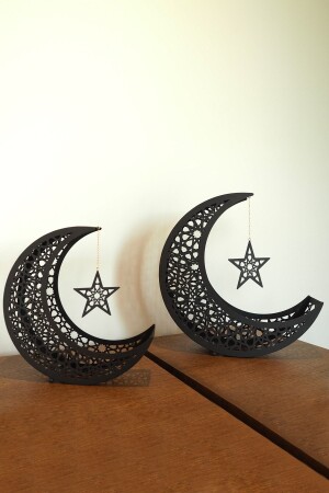MNZ - الإسلامي الهدف الهلال مجموعة من 2 معدني - أسود - اللوحة الإسلامية - الديكورات المنزلية - اللوحات الدينية - wamh106