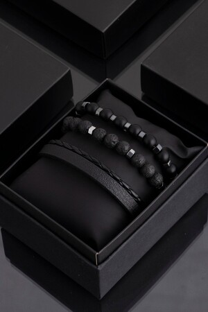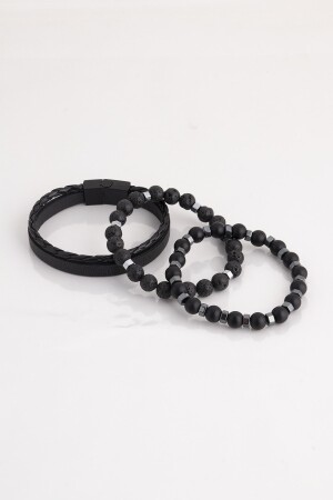 MNZ- الجلد الأصلي، الهيماتيت والحجر الطبيعي مجموعة العنق المزدوجة ثلاث قطع للرجال 006 SRT478-006