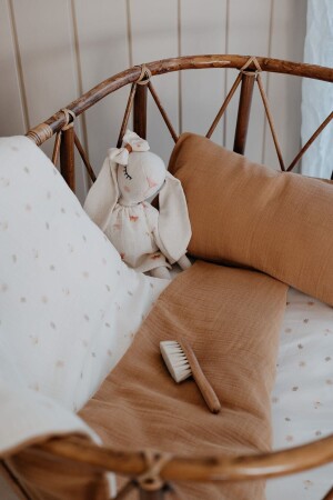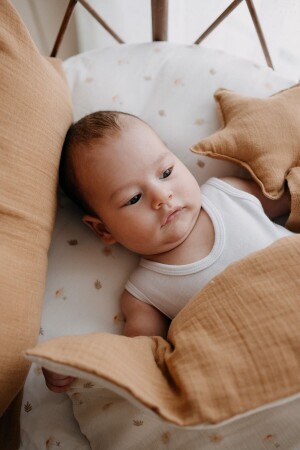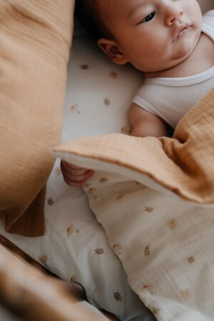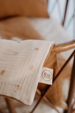 مصنوع من منتج MNZ من ألياف المسلين بنسبة 100٪ ومطبوعة بألوان مصدقة عضوية. محتويات المجموعة هي غطاء غطاء المسلين 100