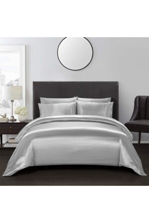 MNZ- الحرير ذات النسيج القطن ساتين 4 قطعة غطاء ملابس مزدوجة مجموعة 200x220 سم الصفحة المطوية الرمادية snc1