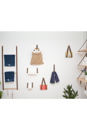 MNZ الخشب الجلود المطبخ حمام الحمام منشفة المصفوفة ومسطح فيلم معلق تحت رف الورق منشفة النابكين معلق منشفة الجلد معلق