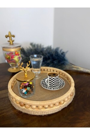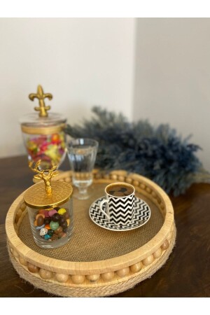 3 Lü (51- 37- 30 CM) Ahşap Kulplu Metal Tepsi Çay Tepsisi Kahve Tepsisi Sunum Tepsi Seti