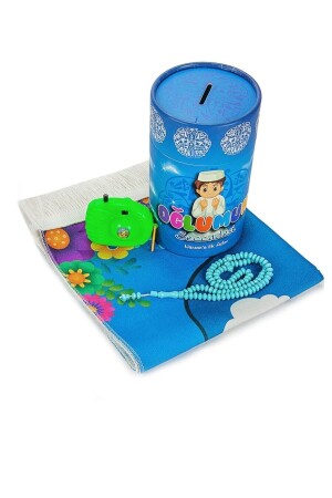 Oğlumun İbadet Seti Namaz ve Kuran Öğreniyorum Çocuk Seccade Seti Mavi