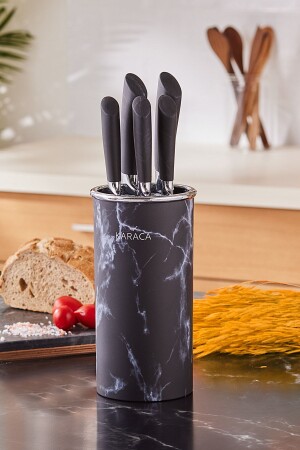 م.ن.ز-كاراكا السوداء من الرخام 6 قطع السكين المجموعة المحتوى: 1 سكين الطاهي 1 قطعة من سكين الرصيف 2 سكين القص 1
