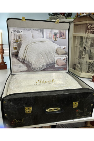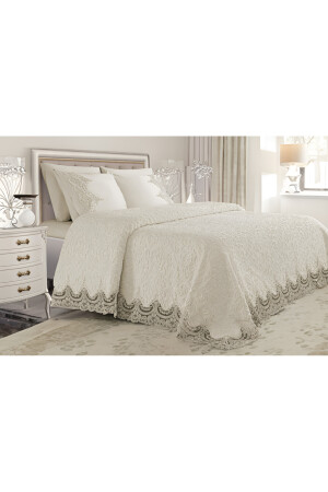 Krem Çift Kişilik Fransız Güpürlü Çeyizlik Battaniye Takımı