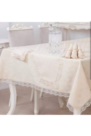 MNZ- الفرنسية المزق Kdk المنسوجة طاولة الطعام مجموعة الكريم 18 قطعة مع الجري