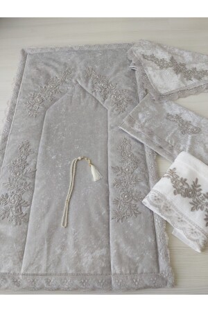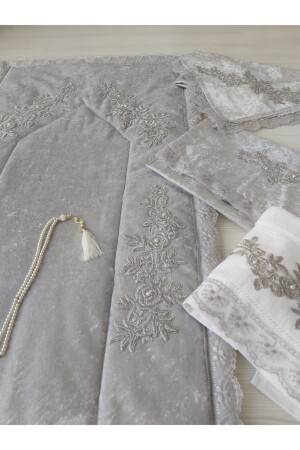 3 ADET Fransız Güpürlü İşlemeli Kadife Çeyizlik Gelin Seti Seccadesi