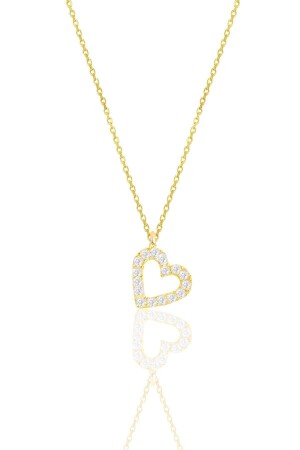 MNZ-925 قلادة قلب فضية سديدة مع حجارة زيركون ذهبية. طول السلسلة: 45 سم حجم القلب: 9 مم