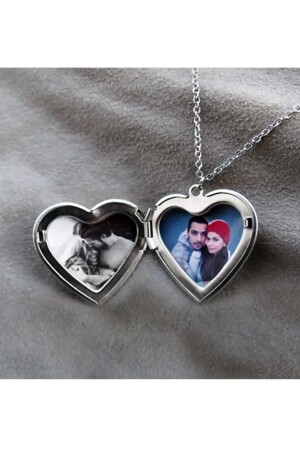 قلادة قلبية ذات نمط في اللون الفضي من نوع MNZ مع كوب و صورة قابل للفتاح. إنها مُغطاة بالفضة. ذروتها بحجم عملة 1 لتر.