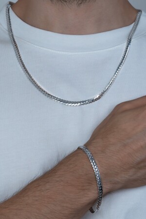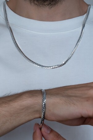 MNZ- الفضة مزقة سكة مسطحة الفولاذ اليونيسكس العنق والصمقال مجموعة Eck36s