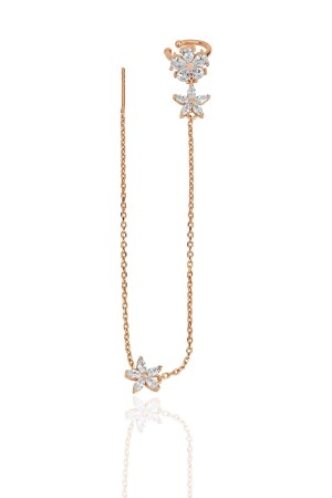 Sıkıştırmalı Gold Rose Gold Renk Çelik Taşlı Kadın Kıkırdak Küpe 2cm Hediye Sevgililer Günü