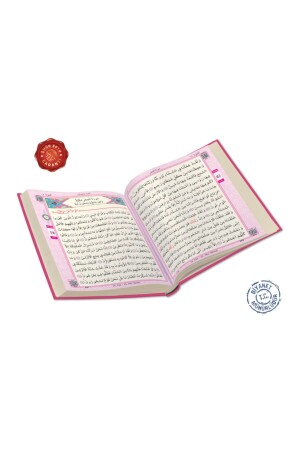 Hediyelik Kadife Kaplı Isme Özel Pleksi Desenli Arapça Orta Boy Kuranı Kerim Fuşya