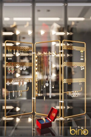 MNZ- المجوهرات المنظمة المنظمة الصندوق الديكورية المجوهرات الوقوف 3 قطع حلقة عنق خاتم الأذن حامل BinoGold628