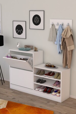 خزانة الأحذية MNZ مع 8 رف و 2 أبواب رف الأحذية أبيض