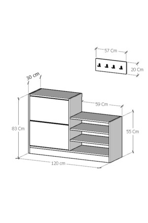 MNZ-Anatolia رف الأحذية المنزلقين للأدراج المزدوجة بفتحين ارتفاع 83 سم. عمق 30 سم. عرض 120 سم. يتم تسجيل حواف المنتج